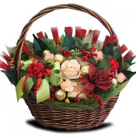Описание: В изготовлении композиции используются конфеты следующих производителей: "Осенний вальс" ("Рот-фронт"), трюфели (фабрика «Победа»), Ferrero Rocher. В композициях использованы искусственные цветы высокого качества, производства Франции, Голландии. Принимаем заказы на любое количество. Предоставляются скидки. Доставляется в подарочной упаковке.