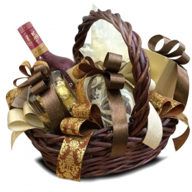 Материал: конфеты, флористический материал, корзина, алкоголь